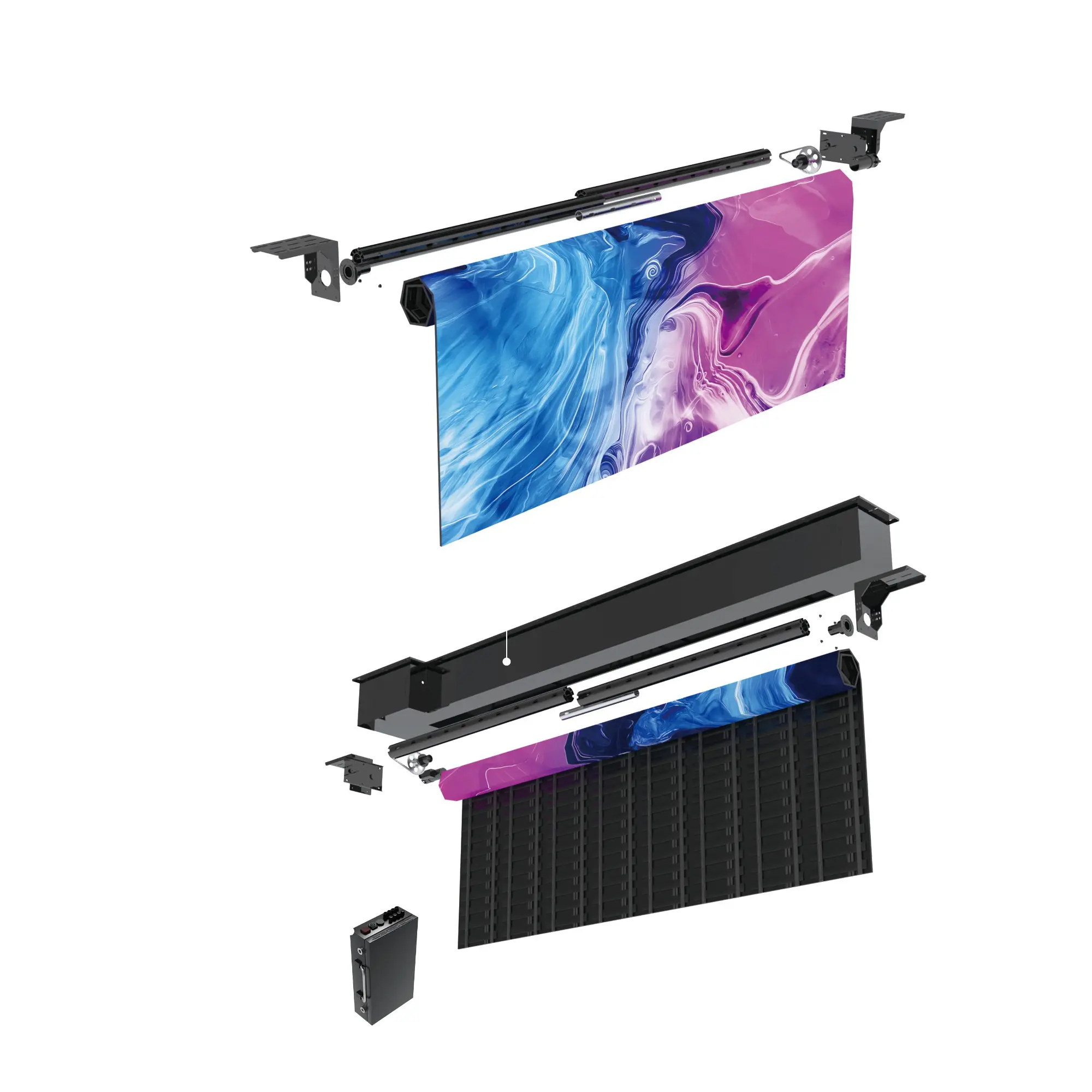 With the help of Rolling Gate, LED Rolling Gate Display is a kind of hide-able display, which can be rolled up to ceiling when it is not be used. Rolling Gate Display also can be used to classroom, shopping mall, meeting room and showroom, etc.where frequently visited places.