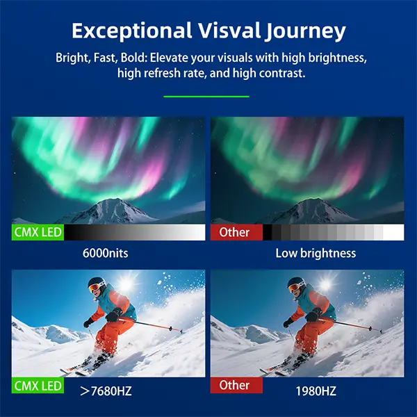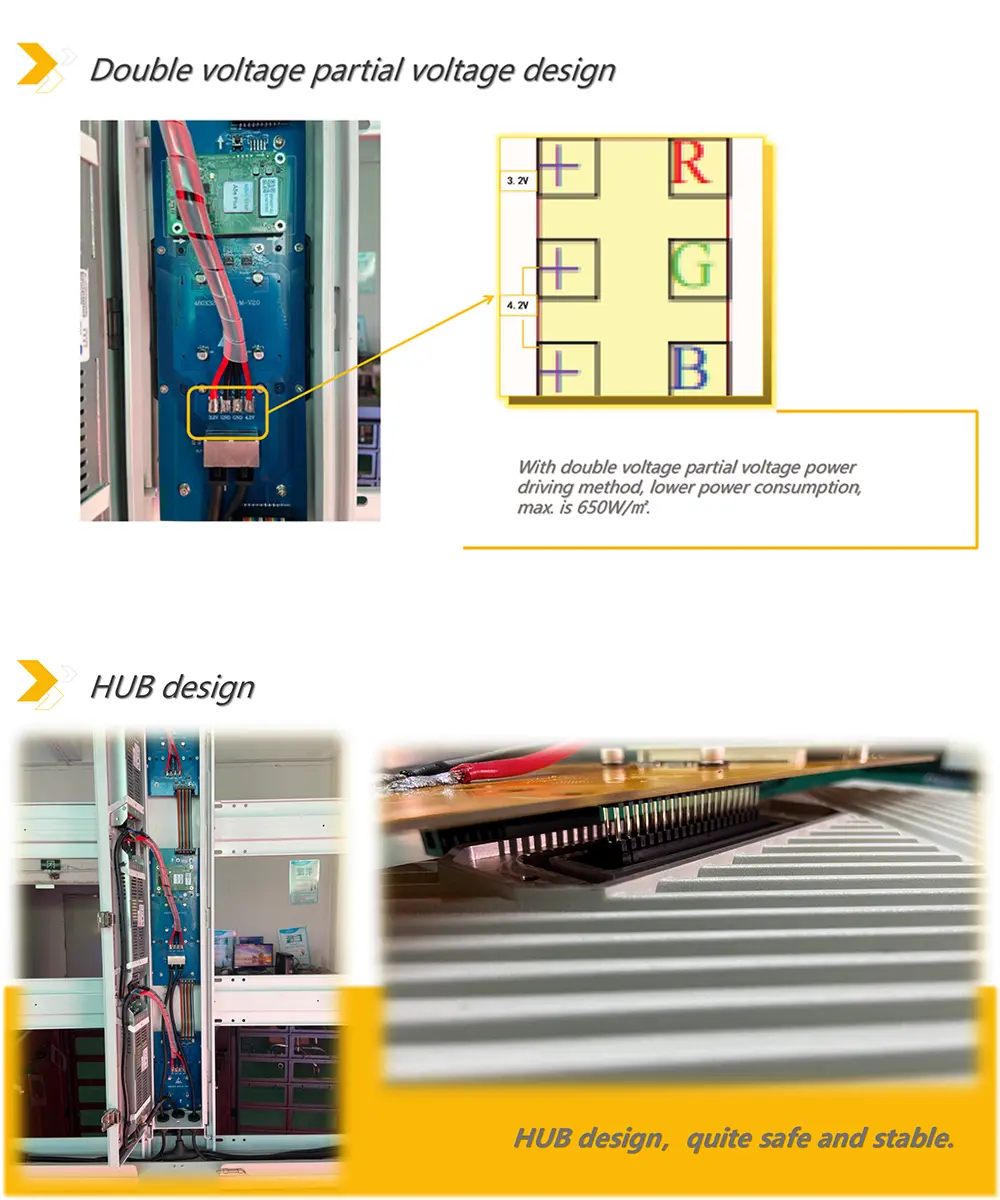 Efficient Heat Dissipation & Low Power Consumption: With partial voltage design, die-casting aluminum construction, and grain heat dissipation tech, no extra fans/AC units are needed. Max power consumption is just 650W/㎡, ensuring energy savings and stable operation in harsh outdoor conditions.