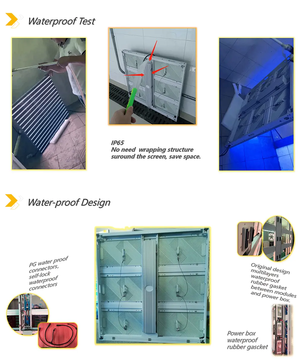 IP65 Waterproof & Durable Build: Passes strict waterproof testing. Equipped with PG self-locking waterproof connectors, multi-layer rubber gaskets (between modules), and waterproof power boxes, it resists rain/moisture without extra wrapping—saving space and ensuring long-term outdoor reliability.